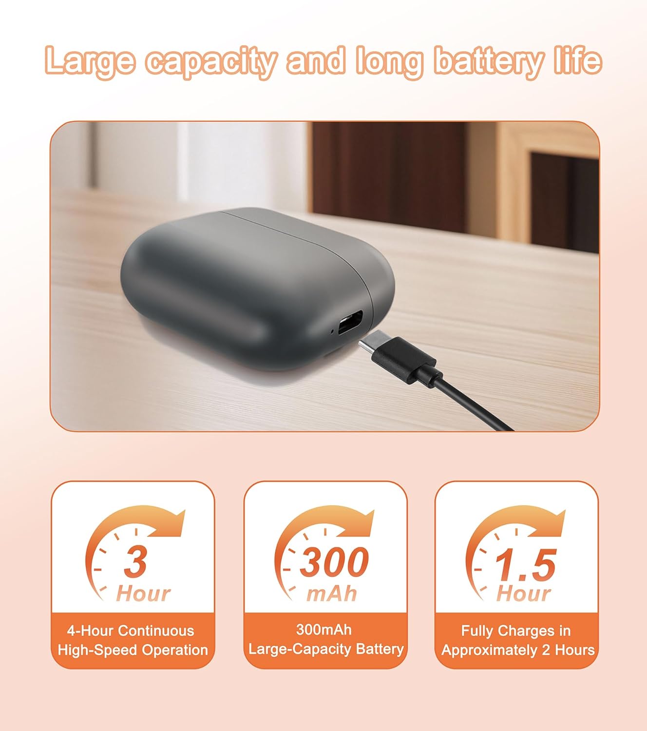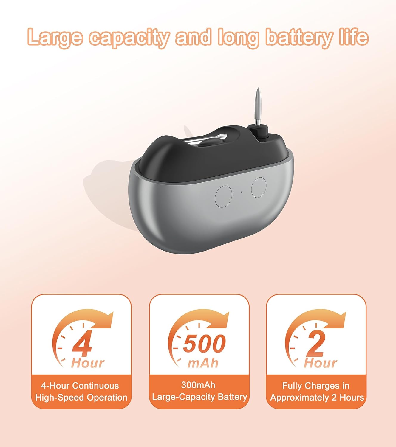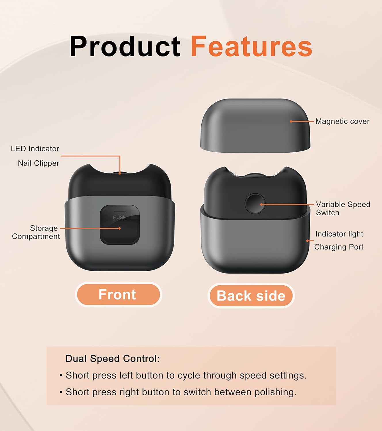 - Small Siae And Portable: BLESSOURCE electric nail clippers are only 1.96×1.96×0.86in size, can be charged by USB, have two speeds: high speed and low speed, Features a 300mAh high-capacity battery that can provide 4 hours of continuous high-speed operation. and a small space for storing nail debris, so you don't need to clean up the nail debris when trimming your nails, perfect for traveling or carrying on business trips.