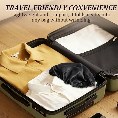 2 In1 Wrap Cap Bonnet Reversible Adjustable Tie Band, Silk Bonnet Hair Wrap Cap for Silk Press, New Satinbonnet for Sleeping, Double Layered Nettie Band for Curly Natural and Braided Hair (Black)