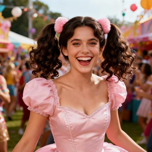 2 PCS Pink Pom Pom Hair Tie Fuzzy Furry Faux Rabbit Fur Scrunchies for Girls Women Hair Accessories