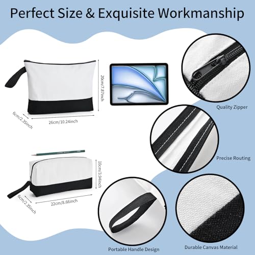 - PLEASANT DIY EXPERIENCES: Sublimation printing temperature170-190 degrees Celsius, use time 40-60 seconds, these DIY heat transfer cosmetic makeup bags are suitable for sublimation, can absorb dyes well, at the same time, on a canvas bag with zipper without any pattern content, you can doodle, decorate, embroider, etc., to make your favorite style, which is a very happy DIY experience