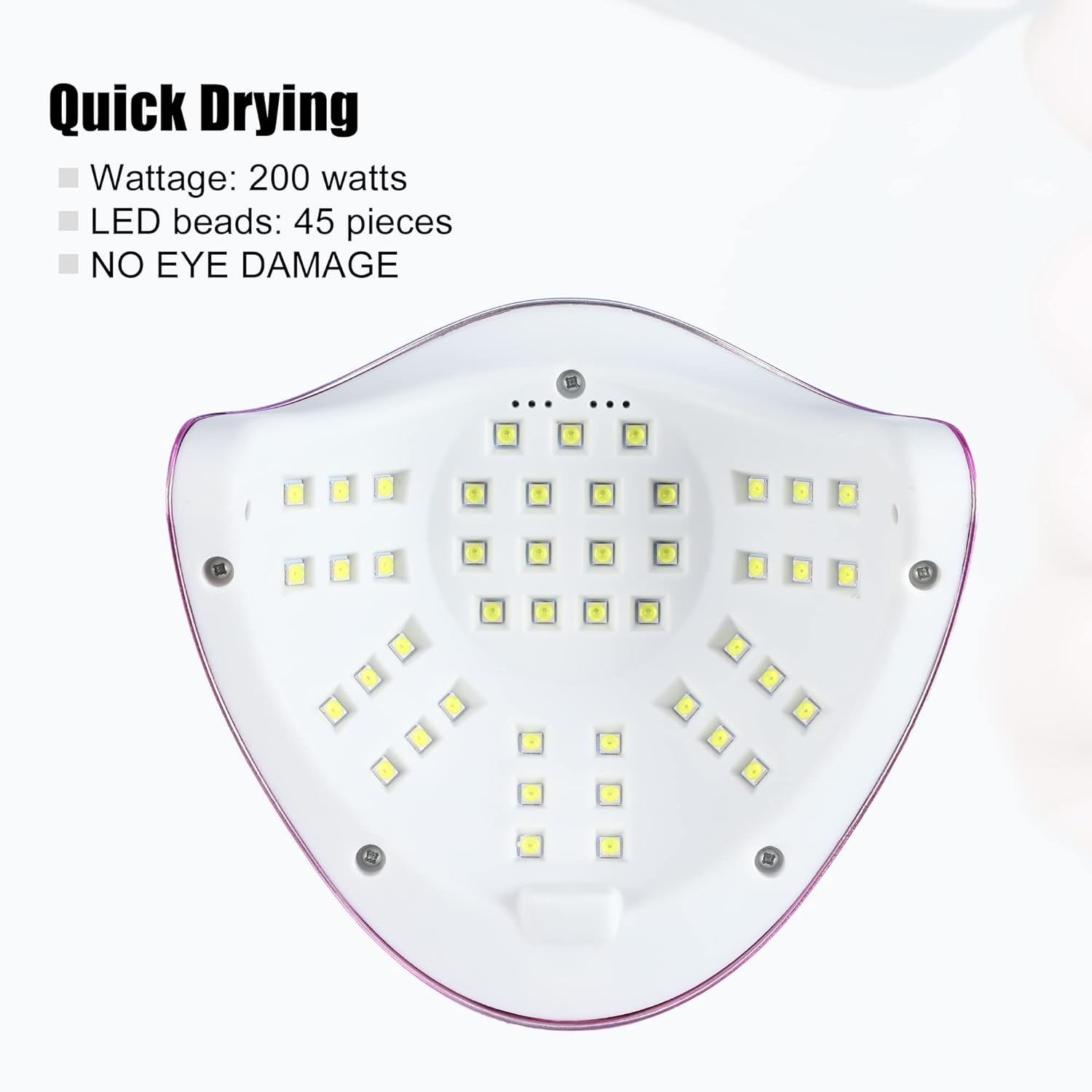 Quick Drying: The nail dryer's 200w 45pcs beads UV-led nail light are evenly distributed inside. It would help to uniformly gel nail polish, and give you quick-speed drying.
