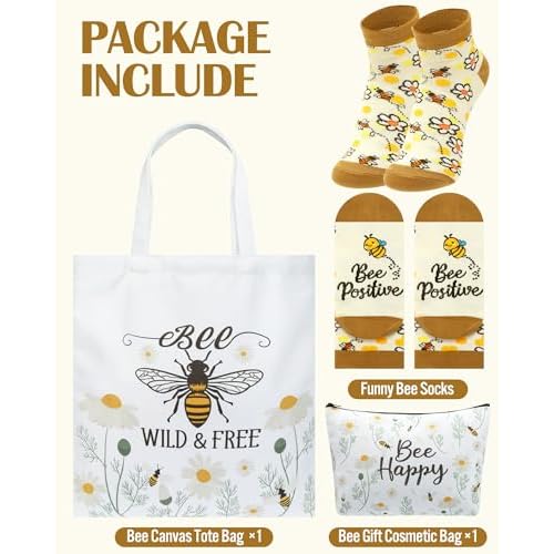 - Package Includes: you will receive 3 pieces of bee gifts, including 1 bee canvas tote bag, 1 bee makeup bag, 1 pair of bee socks, this set brings fresh and vibrant energy to everyday items; An ideal gift for any bee enthusiast that offers both a touch of joy and practicality