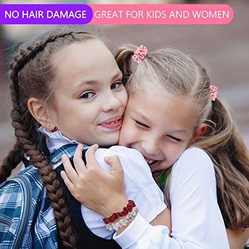 - ?? Pain-Free & Damage-Free: Our pain-free, smooth silk satin won¡¯t snag or pull your hair. Keeping you comfy and unique all day long. Strong Hold: Easily stretch and recover quickly of rubber band can hold your hair tightly while working, learning or playing. These silk scrunchies for women is highly elastic and easy to put on and take off without snagging, tangling or pulling.