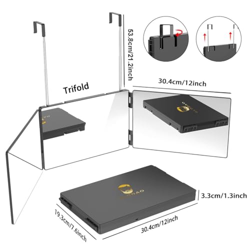 - ¡¼Lightweigh And Portable¡½The size of our 3 Way Hair Cutting Mirror is 12 X 7.6 X 1.3in. And it comes at 1715.2g. This 3 Way Hanging Travel Mirror for Hair is Portable folding design, it is also suitable for travel.