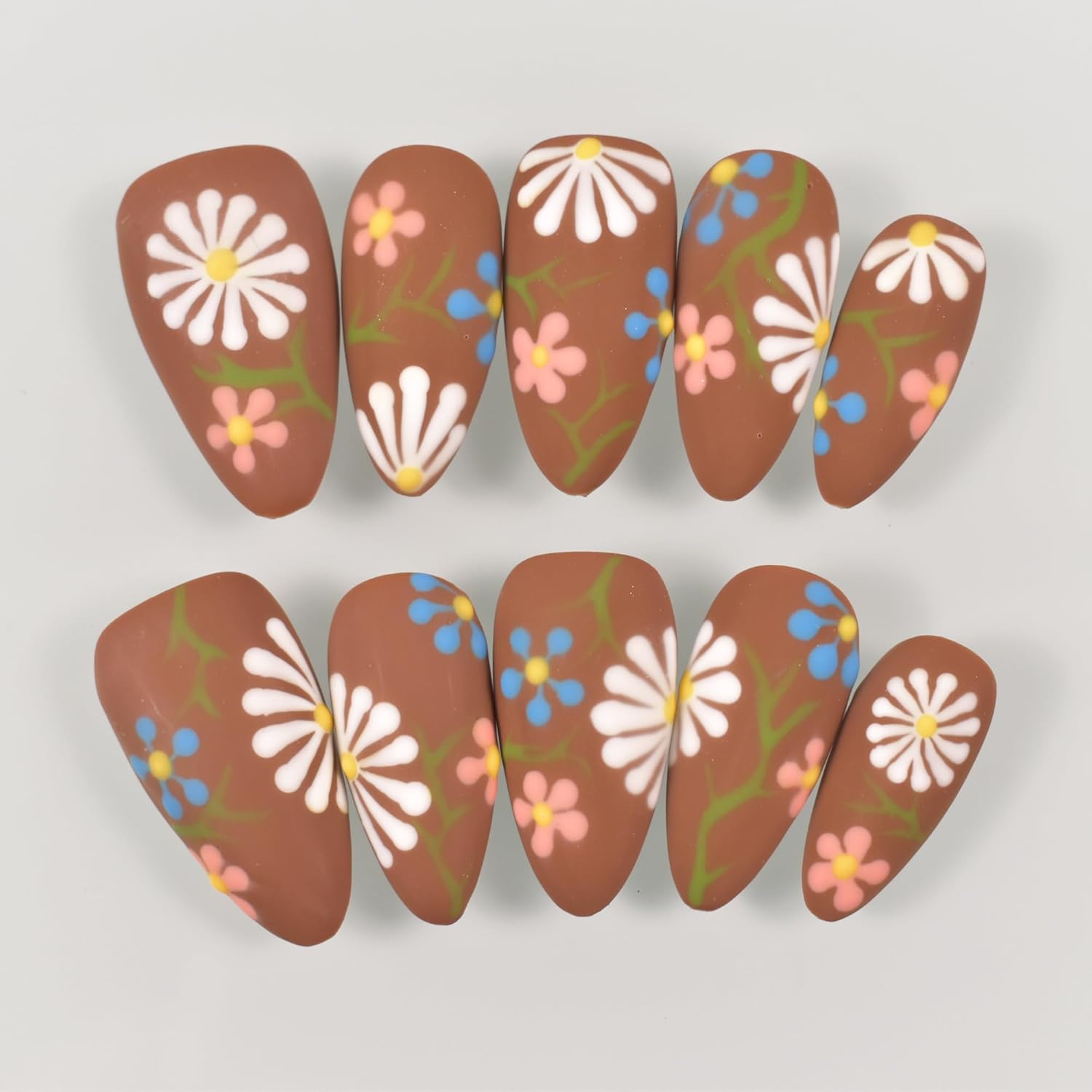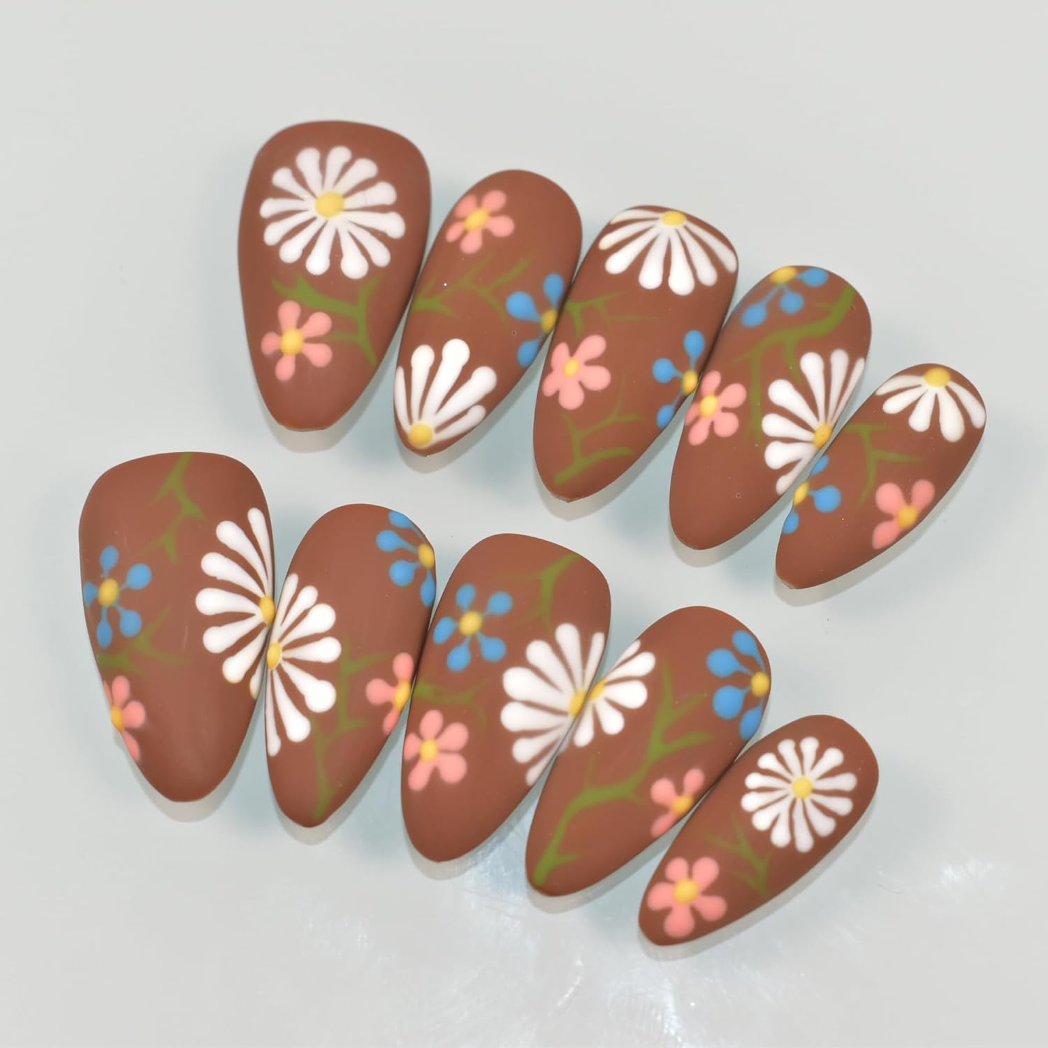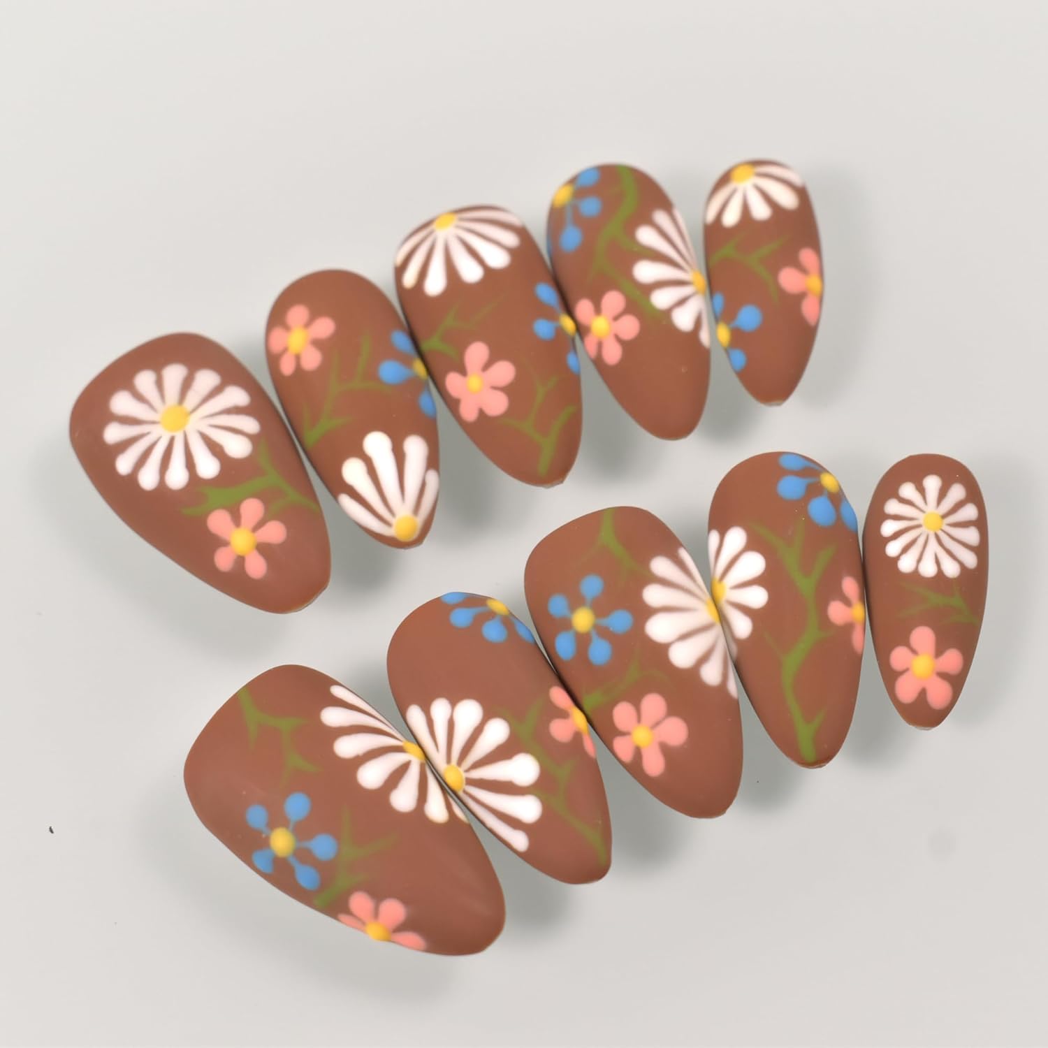 - Each piece of flowers press on nails for women is pure handmade and each piece has a unique design added to it.