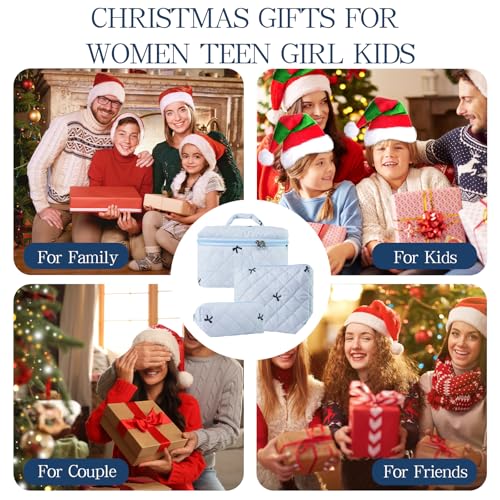 3Pcs Quilted Makeup Bag, Cute Floral Cotton Cosmetic Bag set, Coquette Bow Makeup Pouch Large Travel Toiletry Bag