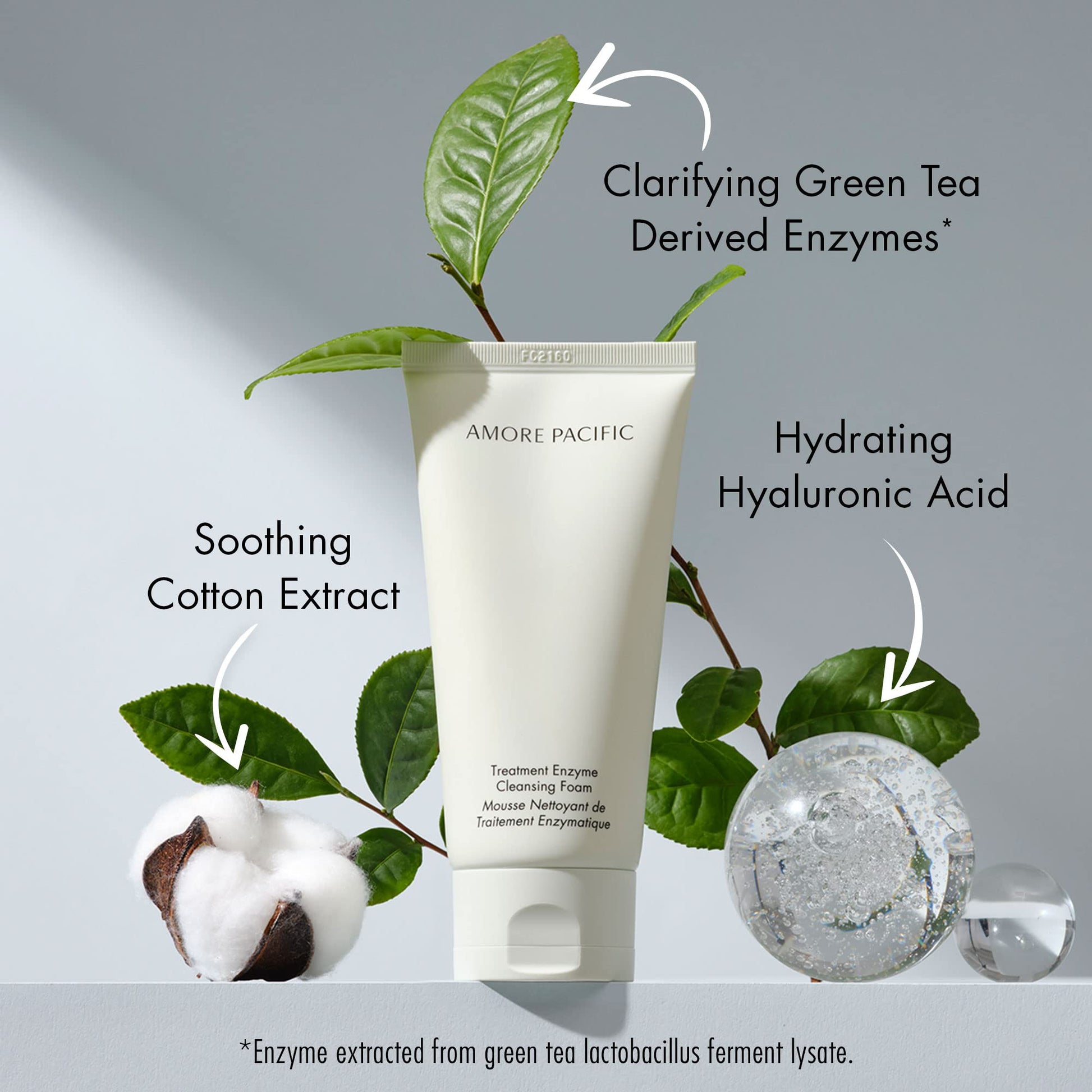 - AMOREPACIFIC's bestselling cleansing foam has been formulated with clarifying Green Tea Probiotic-Derived Enzymes, soothing Cotton Extract, and hydrating Hyaluronic acid that leaves skin hydrated and radiant.
