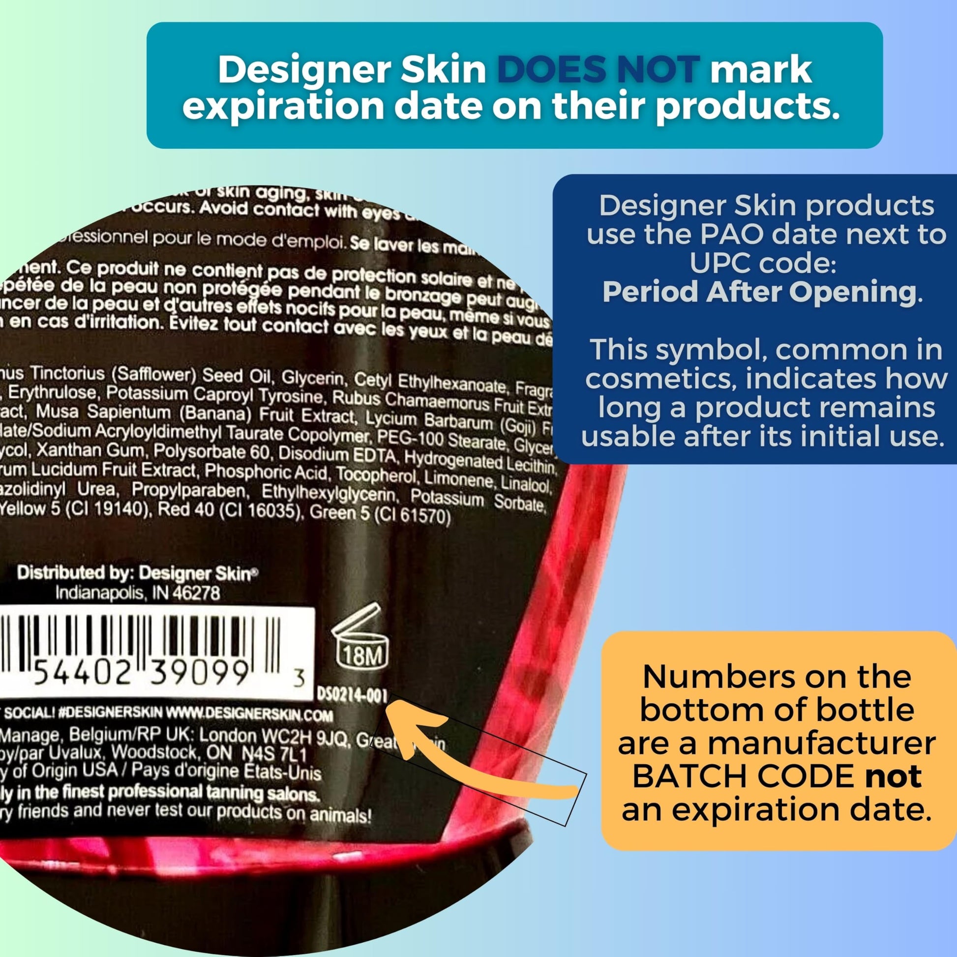 Details: Designer Skin Obvious 18X Extra Attitude Bronzer 13.5 oz Tanning Bed Lotion Elevate Your Bronze with Designer Skin Obvious Tanning Lotion Achieve an enviable glow with Designer Skin Obvious Tanning Lotion. Our unique formula features a Color Amplified Complex designed to enhance your natural color for stunningly dark and flawless results. Features: 18X Extra Attitude Bronzer: Immediate bronzing to deliver dark, impeccable color development. Color Amplified Complex: Boost your natural color development with powerful sources of DOPA and Tyrosine, essential components for melanin production, ensuring faster and darker color results. Hydrating Jelly Berry Blend: Provides lightweight, lasting hydration while nourishing your skin with vitamins and antioxidants, promoting younger-looking, radiant skin. Fragrance: Delight in the refreshing scent of Sparkling Citrus.