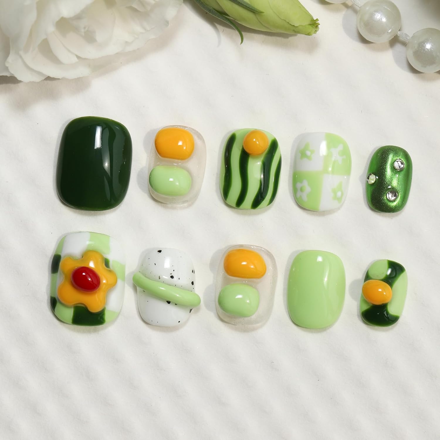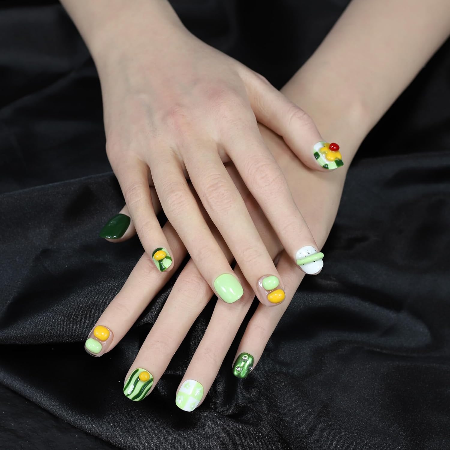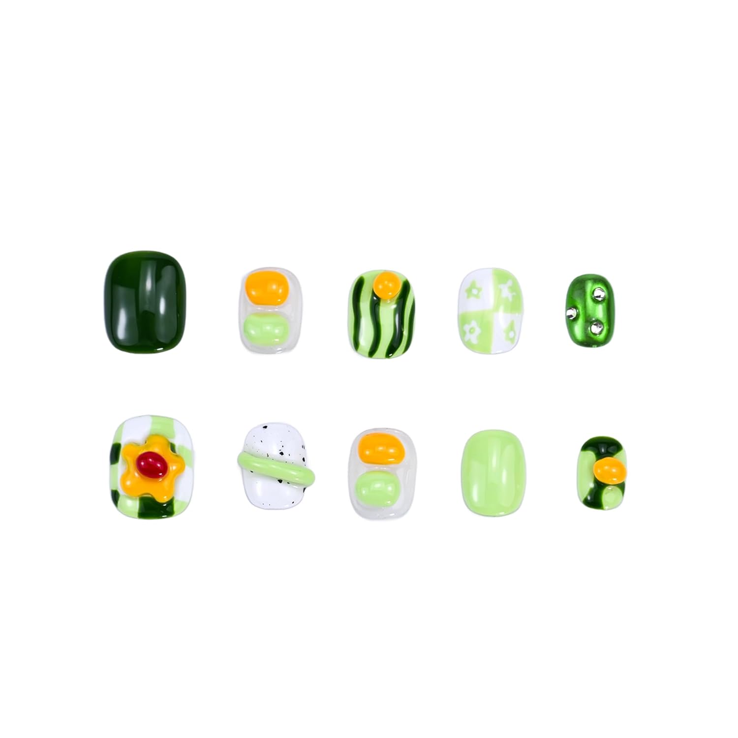 Avocado Press-On Nails - Handcrafted Fruit Design Manicure Set for Women (XS)