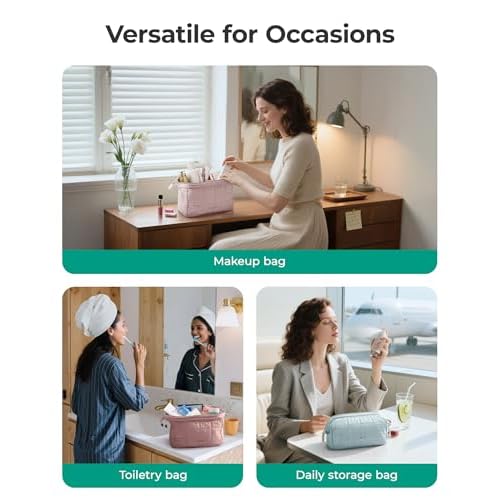 - ¡¼CONVENIENT DESIGN¡½- The wide opening design of this makeup bag allows for effortless access to all your beauty essentials. Say goodbye to wasting time searching through tiny cosmetic bags. With this women's toiletry bag, you can quickly find your desired cosmetics like lipstick or eyeshadow