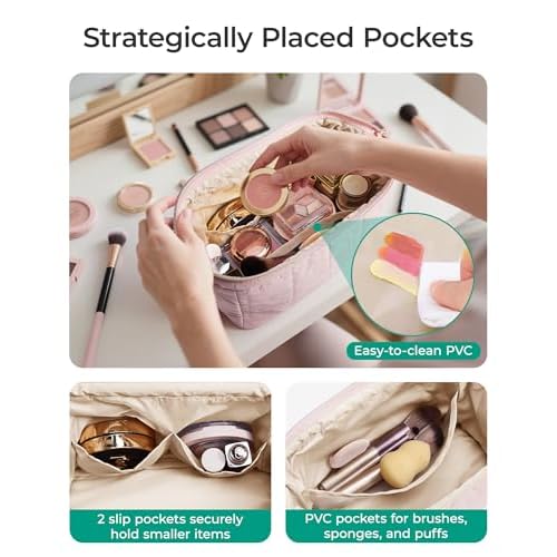 - ¡¼EASY-CLEAN POCKET¡½- This well-crafted make up bag features dirt-proof pockets with PVC lining to hold your makeup brushes.Travel cosmetic bags for women ensure that your skin care and beauty products remain protected and spill-proof. Perfect for women who are always on the go