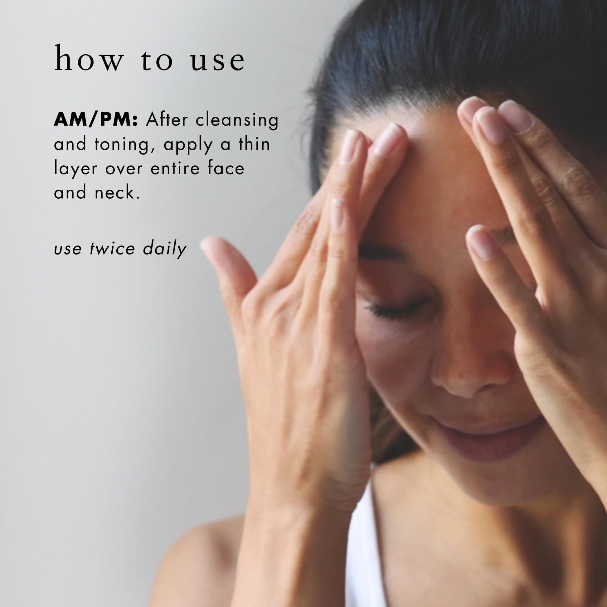 - HOW TO USE - Once per day, after cleansing and toning, apply a thin layer over your entire face & neck. Follow with SPF or moisturizer, depending on time of day.