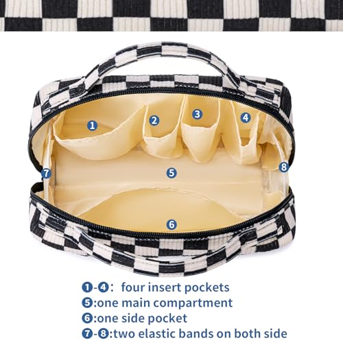 Bluboon Makeup Bag Zipper Pouch Travel Portable Cosmetic Bag Organizer for Women and Girls(Corduroy Checkered)