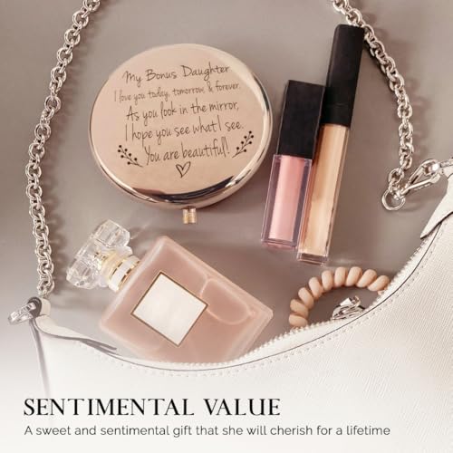 - Heartfelt Engraving for Bonus Daughter: This stainless steel compact mirror is engraved with the touching message for your bonus daughter ? a daily reminder of your love.