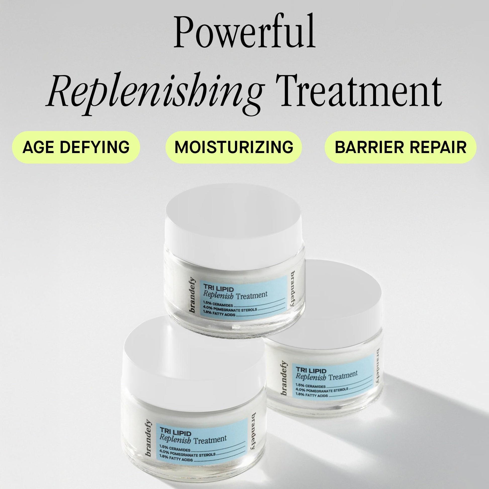 Brandefy Tri Lipid Replenish Treatment - 1.5% Ceramides, 4.0% Sterols, 1.8% Fatty Acids - Peptide Moisturizer, Hydrating Face Cream, Made in the USA (1.6 Oz)