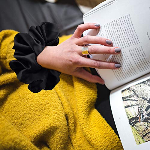 - ??¡¼6 PACK OF LARGE BLACK SATIN SCRUNCHIES¡½-- Satin scrunchies for women are great quality and will work for your hair. There is a visible difference in reduced breakage by using these satin silky scrunchie compared to traditional hair ties.