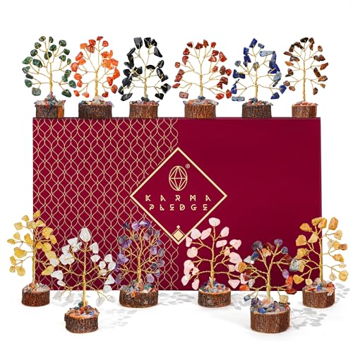 - TREE OF LIFE: Elevate the ambiance of your home or office with our set of 12 mini wooden base healing crystal trees. Crafted to infuse spaces with positivity, these exquisite pieces not only beautify surroundings but also promote harmony and balance. A must-have for those seeking a unique and uplifting decor accent.