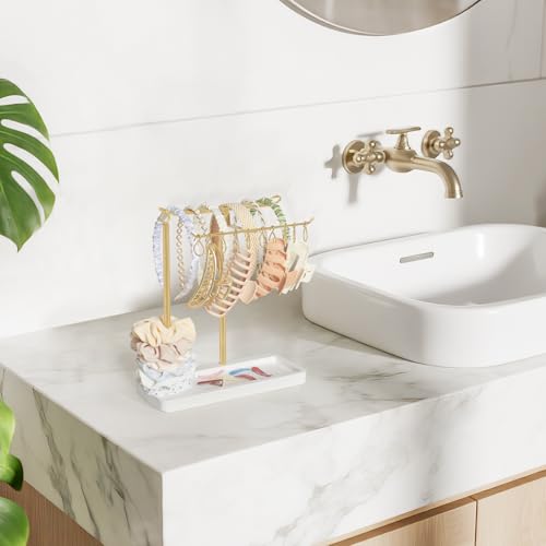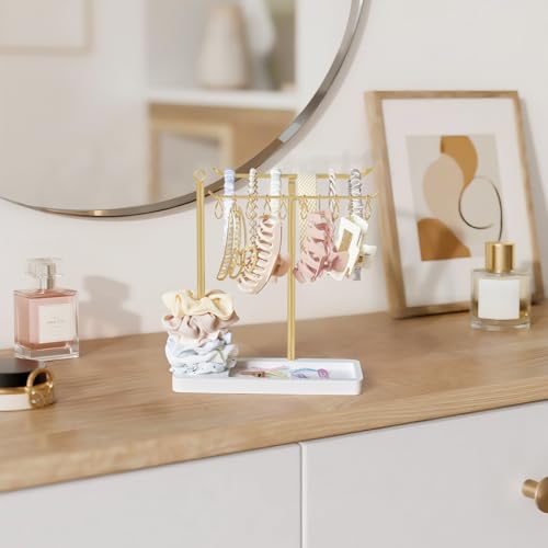 - Multi-functional Headband Organizer: Elegant metal hair tie organizer designed to keep your scrunchies, hair clips, claw clips headbands and jewelry neatly stored and easily accessible. Perfect for girls and women who love organized vanity accessories (Patent pending)