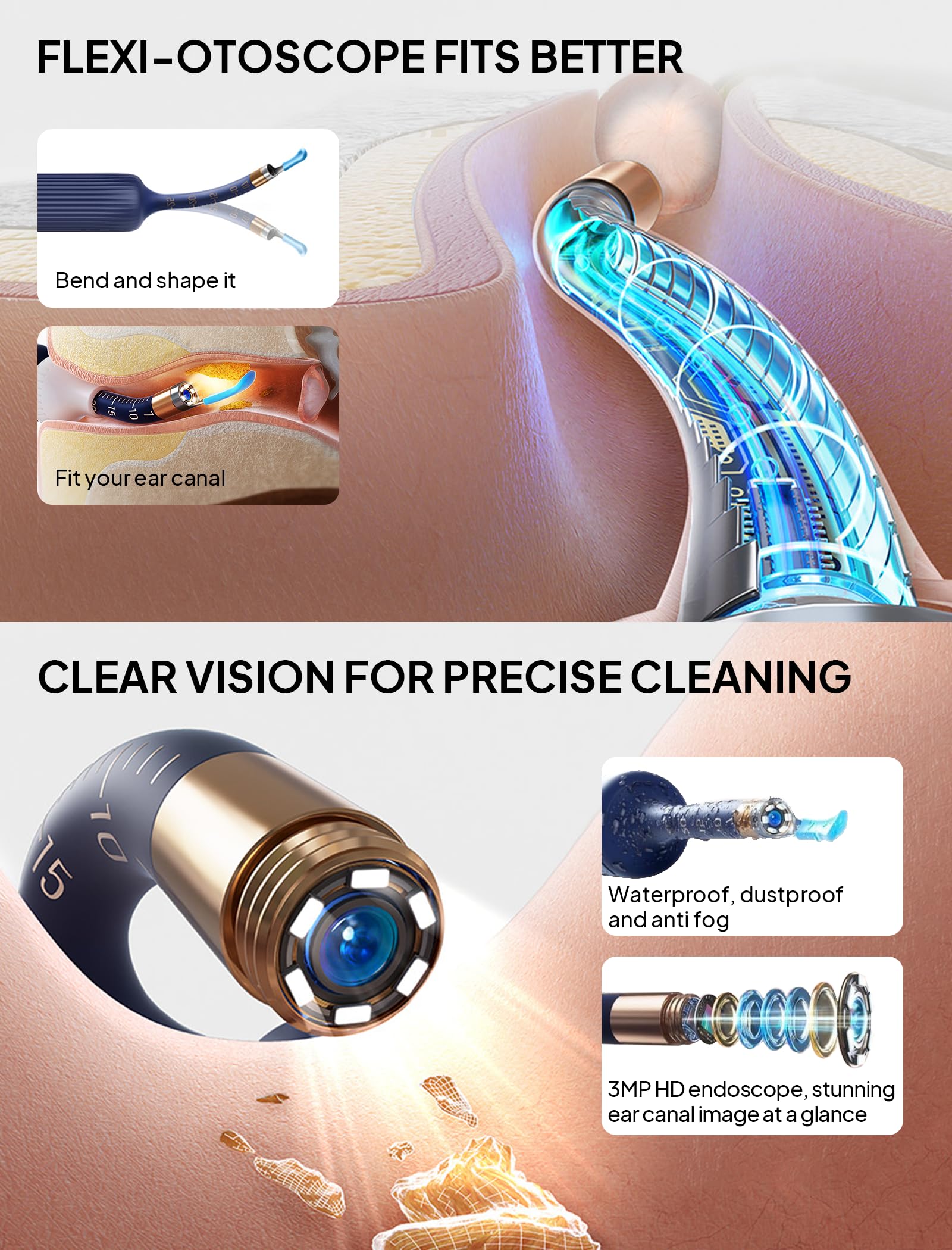 - Personalized & Flexible Otoscope: Our otoscope flexes to match your ear canal's shape for comfortable exploration. 1080P micro-camera deliver lag-free HD imaging, revealing ear/nose/throat details with unmatched color accuracy - ideal for at-home exams or sharing visuals with your doctor