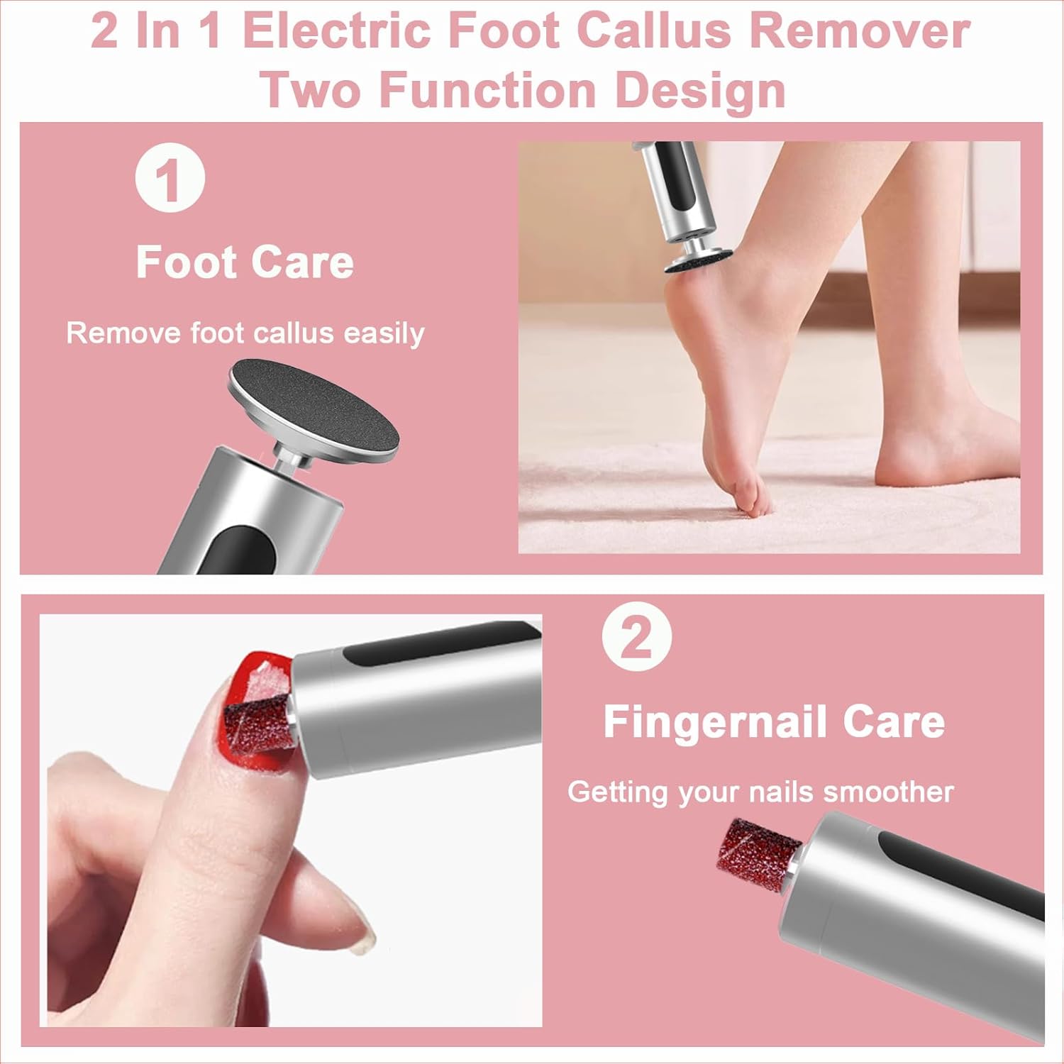 - 🌟 2 in 1 Care System: Transform your foot and nail routine with SOMIVOT’s Electric Foot Callus Remover! The 10 Grinding Heads & 20Pcs Sandpaper Discs offer dual-action power—effortlessly remove tough calluses and polish nails to salon-level smoothness.