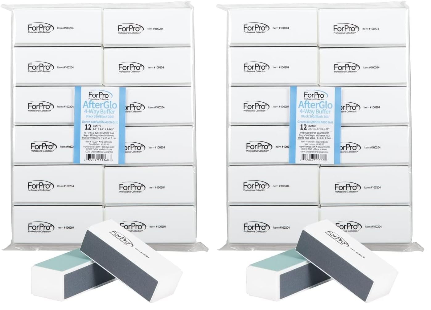 ForPro AfterGlo 4-Way Nail Buffer Set - 12-Count Manicure & Pedicure Buffers, 360/4000 Grit