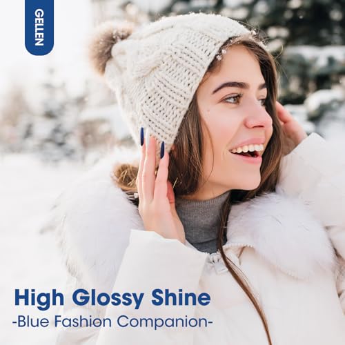 GELLEN Blue Gel Nail Polish Set, 6 Colors Glitter Royal Navy Dark Blue Pearlescent Shell White Nail Gel Polish Kit, Soak Off UV Gel Polish Winter Nail Art Design DIY Manicure Gift for Her
