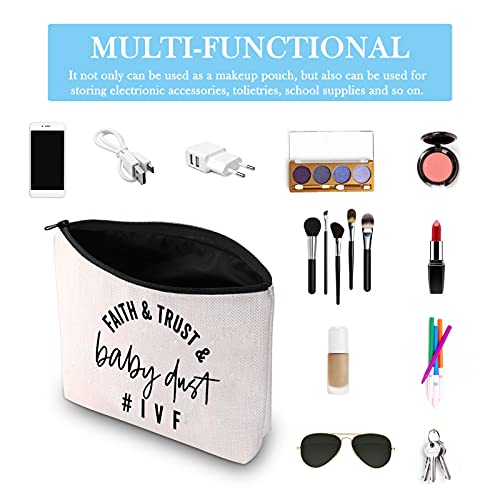 GJTIM IVF Warrior Makeup Bag Faith Trust and Baby Dust IVF IUI Transfer Day Gift Inspirational Infertility Gift (Faith Trust Baby Dust Bag)