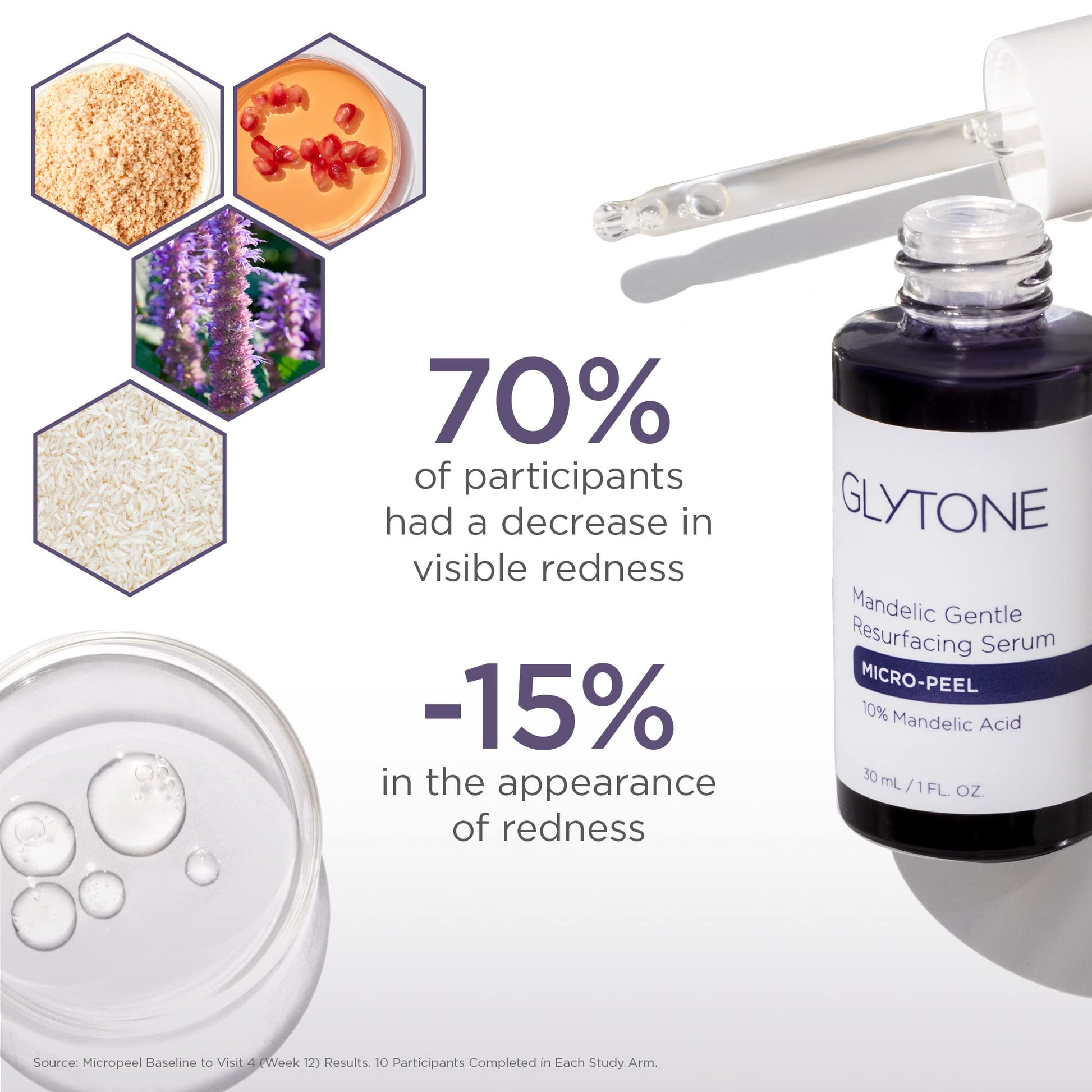 Glytone Micro-Peel 10% Mandelic Acid Serum | Anti-Aging AHA Gentle Exfoliant with Phytic Acid for all Skin types | Reduces Redness, Uneven tone & Dark Spots | Fragrance-Free, Paraben-Free - 1 Fl oz.