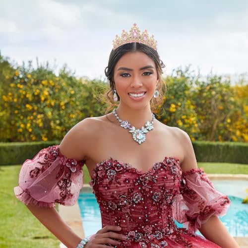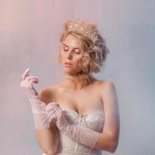 Gold Crown for Women, Fufuddz Pink Crystal Tiara Princess Tiaras Queen Crowns with Combs Quinceanera Birthday Bridal Wedding Prom Party Halloween Headband Christmas Hair Accessories 15th 16th