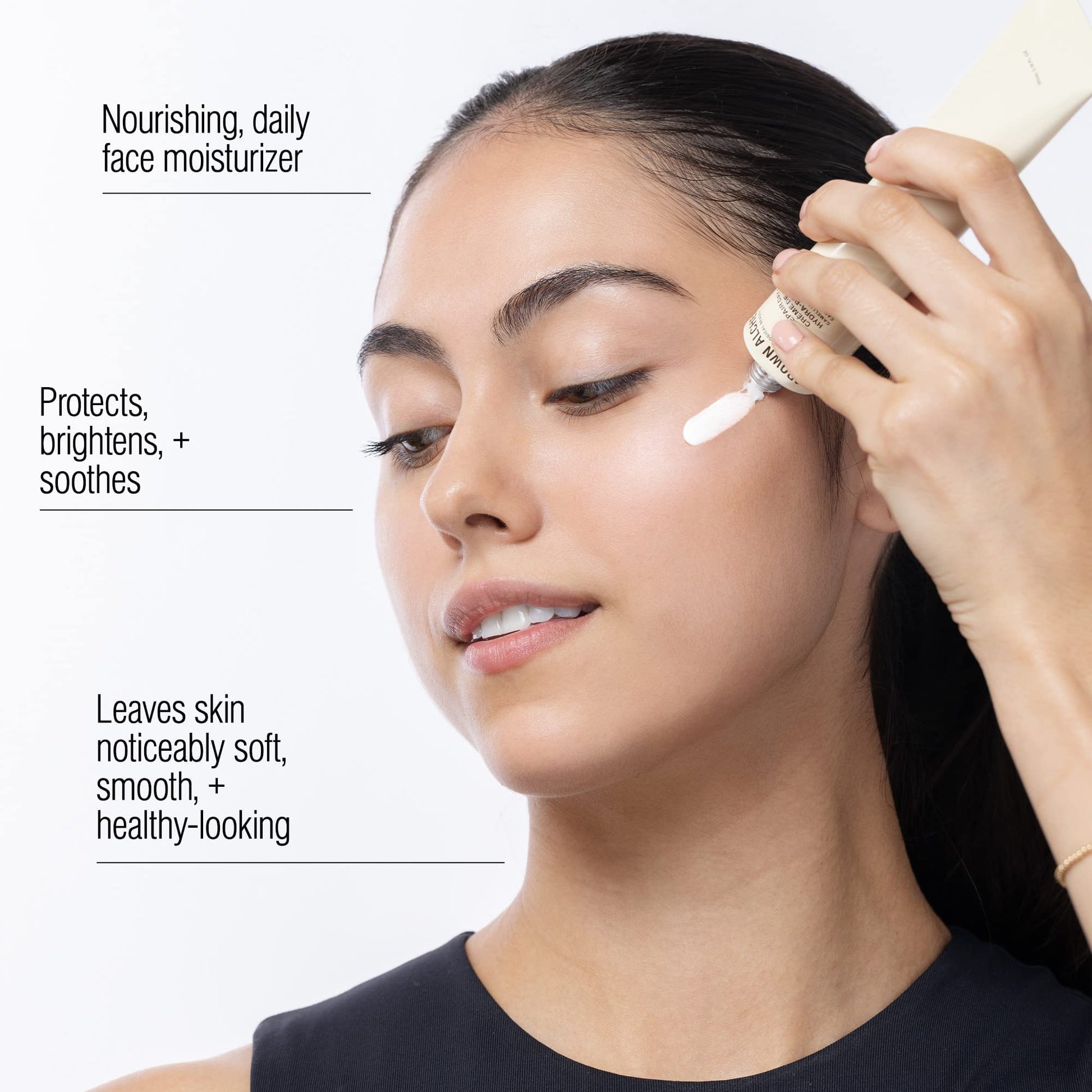 - This high-performance daytime moisturizer empowers the skin with plant-derived actives, including Aloe + Vitamin E, which alchemize to improve skin hydration levels without leaving residual oil or shine on the skin