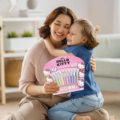 Hello Kitty 10 Piece Plant Based Lip Gloss, Girls Party Favors, First Makeup Set for Girl, Perfect for Parties, Sleepovers, and Birthday Gifts, Ages 3+, by Townley Girl