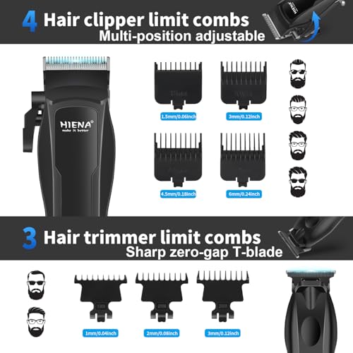 HIENA PRO Hair Clippers for Men Professional, Cordless Barber Clipper & T-Blade Beard/Hair Trimmer Set, Electric Razor Foil Shaver Nose Trimmer Barber Kit, Men's Hair Cutting Kit with LED Display