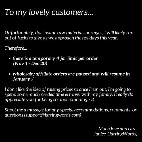 Jar of Fs (5oz) Gift Jar "Fucks to Give" Great Gag Gift Christmas White Elephant