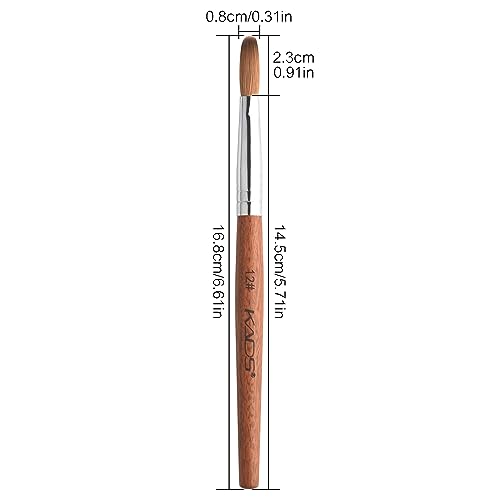 KADS 12# Pure Kolinsky Hair Bristles Acrylic Nail Brush Oval Crimped Shaped RedWood Handle Professional Salon Quality (12#)