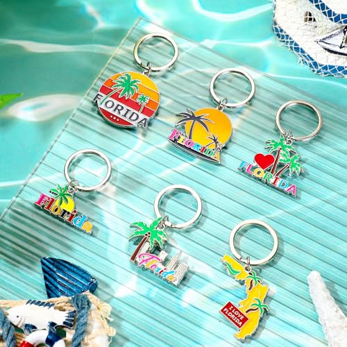 Landical 6 Sets Florida Souvenir Gifts Include 6 Pcs Florida Cosmetic Bag and 6 Pcs Metal Keychain for Women Traveler Christmas Party Gifts