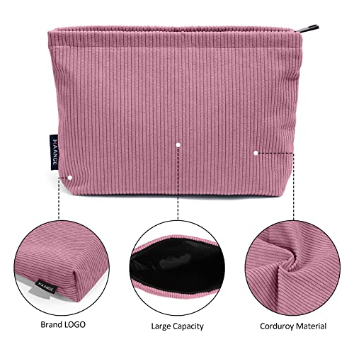 MAANGE Cosmetic Bags for Women Small Makeup Bag for Purse Corduroy Makeup Pouch Travel Makeup Bag with Metal Zipper Make Up Bag for Travelling(PINK)
