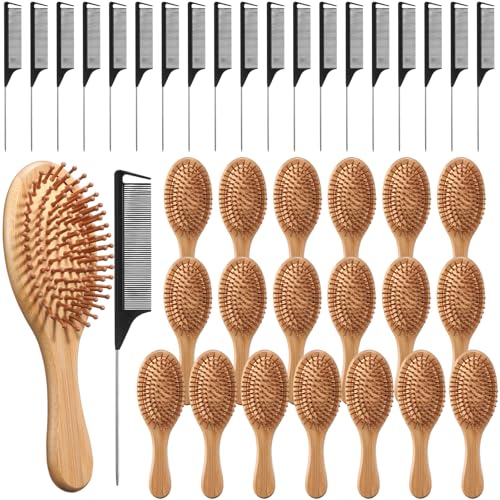 - Friendly Natural Materials: includes 20 Pieces hair brush set, made of 100% natural sustainable bamboo, the bamboo hairbrush glides easily to any hairstyle, without pulling or scratching, helping to create smooth and shiny hair; Use bamboo brushes to brush hair regularly to add shine and luster to dull hair; Make hair smooth and silky soft; Your hair and scalp will be healthier