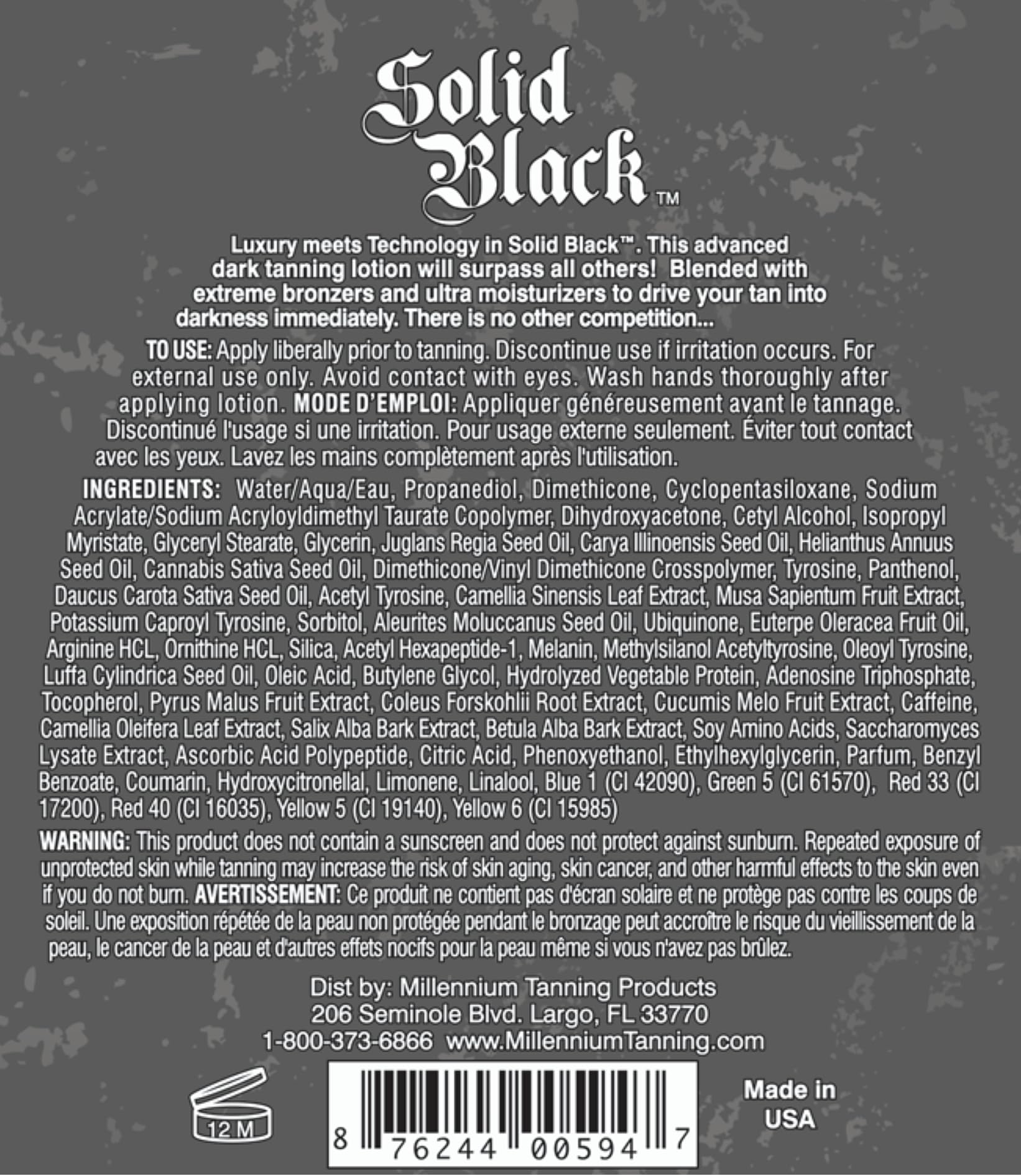 Millennium Tanning SOLID BLACK 100X Dark Tanning Lotion Indoor Outdoor Bronzer Tanning Bed Lotion 13.5 fl. oz. 2-PACK