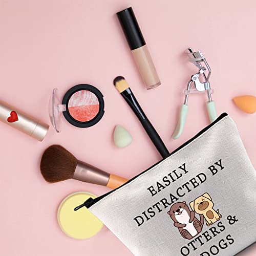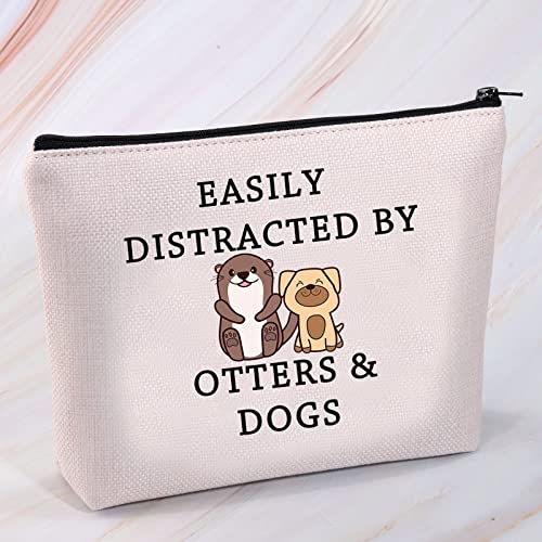 MNIGIU Otter Gift Dog Lover Makeup Bag Easily Distracted by Otters and Dogs Zipper Pouch Bag Gift (ottter dog bag)