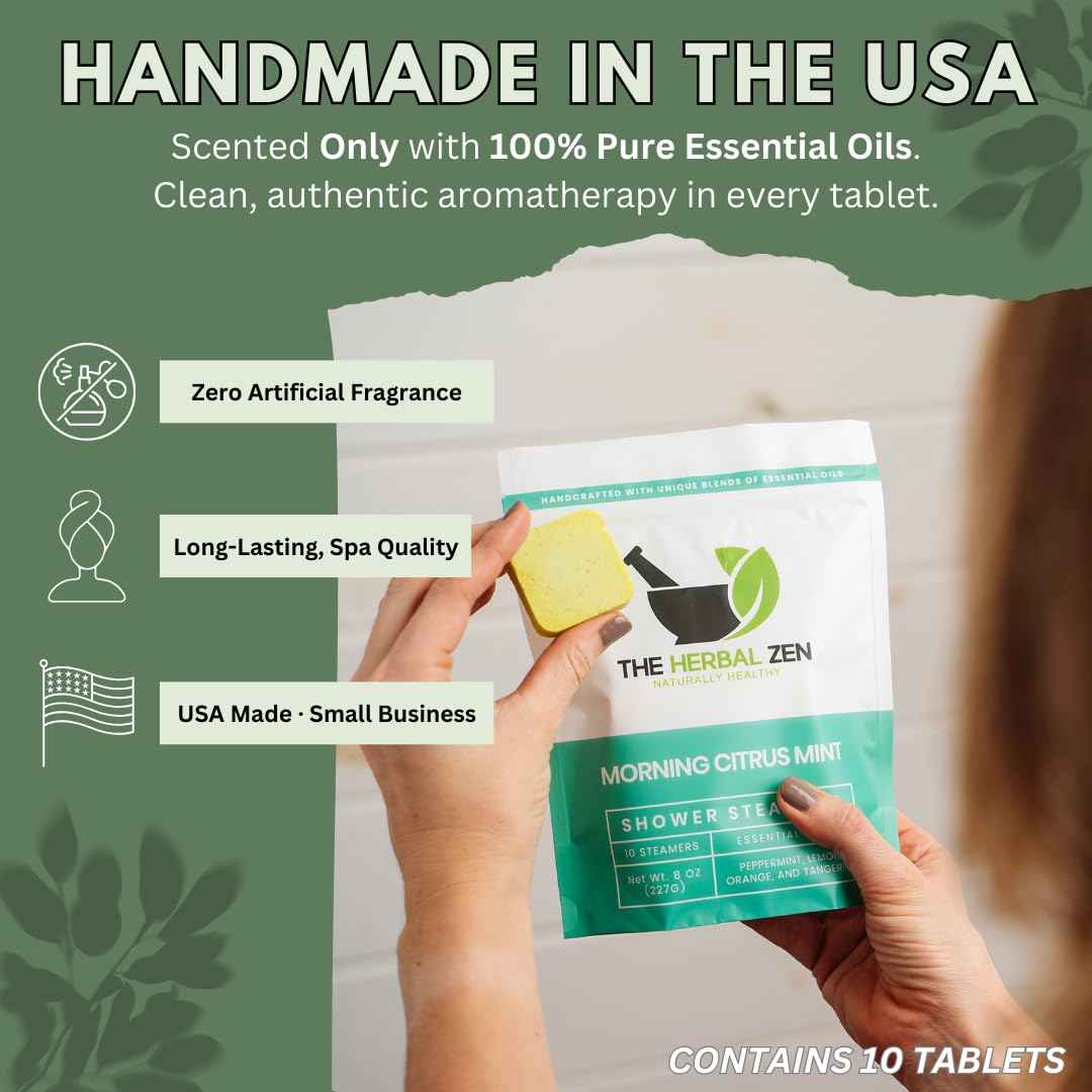 Morning Citrus Mint Shower Steamers Aromatherapy for Energy - Christmas Gift - Adult Stocking Stuffer - USA Made - Peppermint & Orange Shower Bomb Tablets - Soothing Natural Essential Oils (10 Pack)