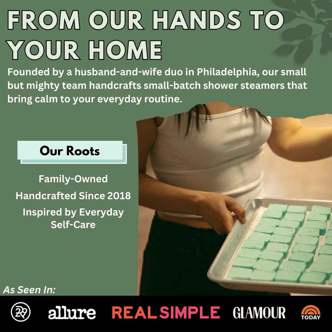 - A Natural Aromatherapy Experience - Infuse relaxing self care and aromatherapy into your daily shower with our pure essential oil shower steamers. Our stress relieving shower fizzies create an at-home spa experience that is affordable and convenient.