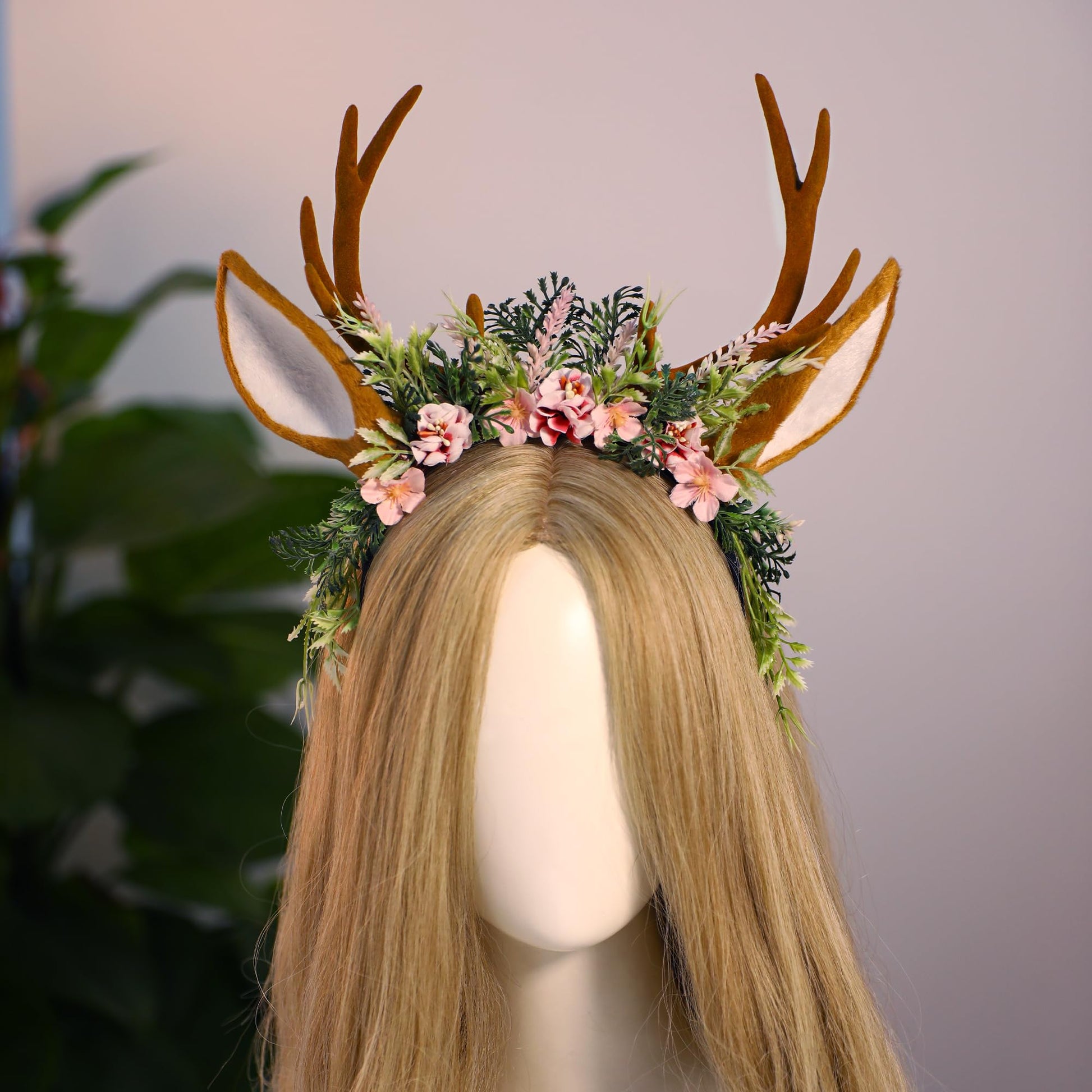 - Stylish Appearance: The reindeer ears and horns garland headband is a stylish accessory that blends bohemian and pastoral elements with floral accents. It's suitable for both childrenaissanceand adults, and its versatile color can be paired with any outfit for a chic look.