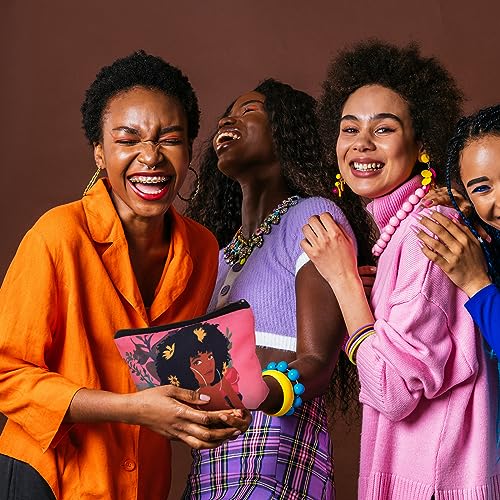 - Vibrant and Eye Catching Design: experience the beauty of 16 canvas makeup pouches with vivid and energetic patterns that will instantly catch everyone's attention; The well designed black female theme patterns are long lasting and resistant to fading, ensuring that the colors remain bright throughout their use