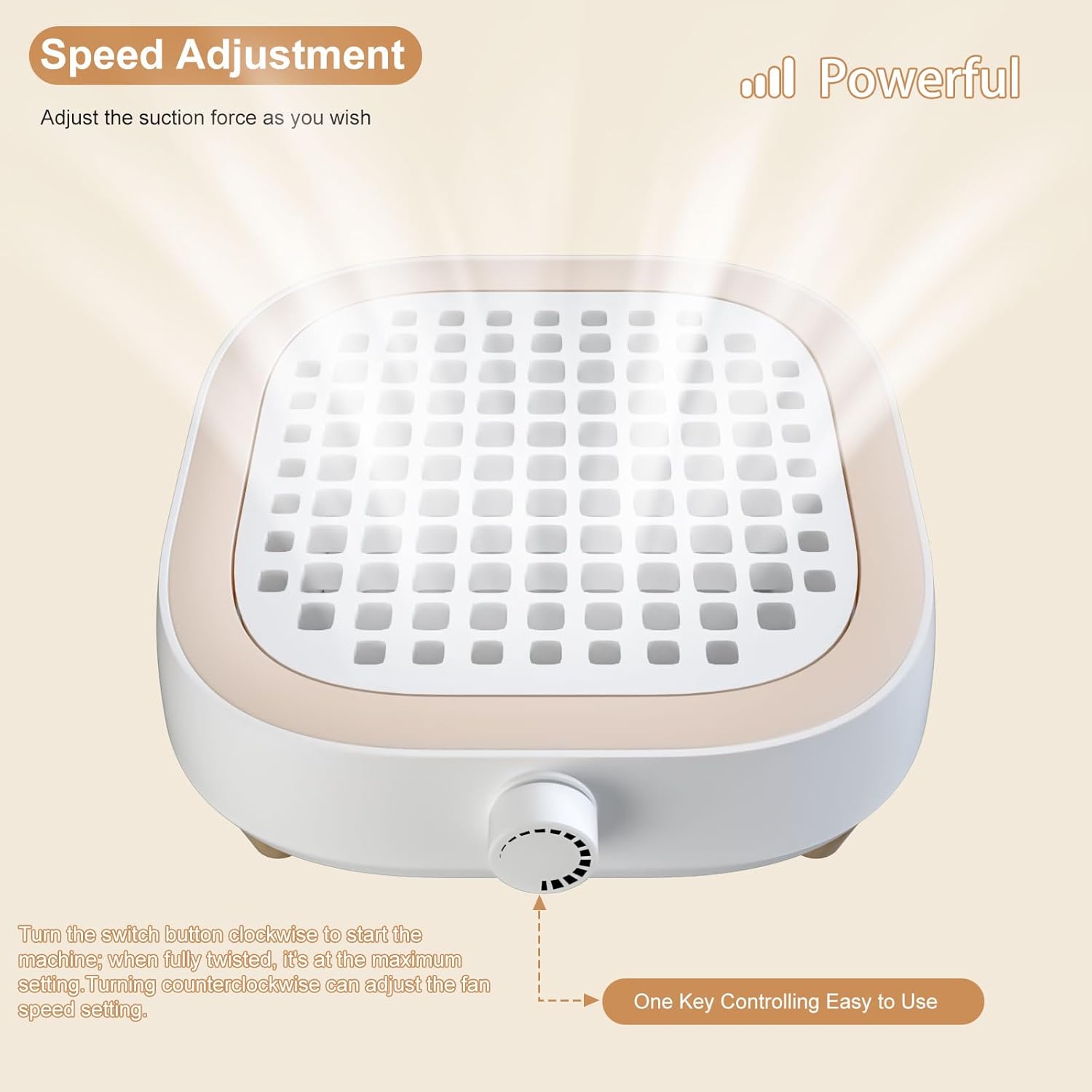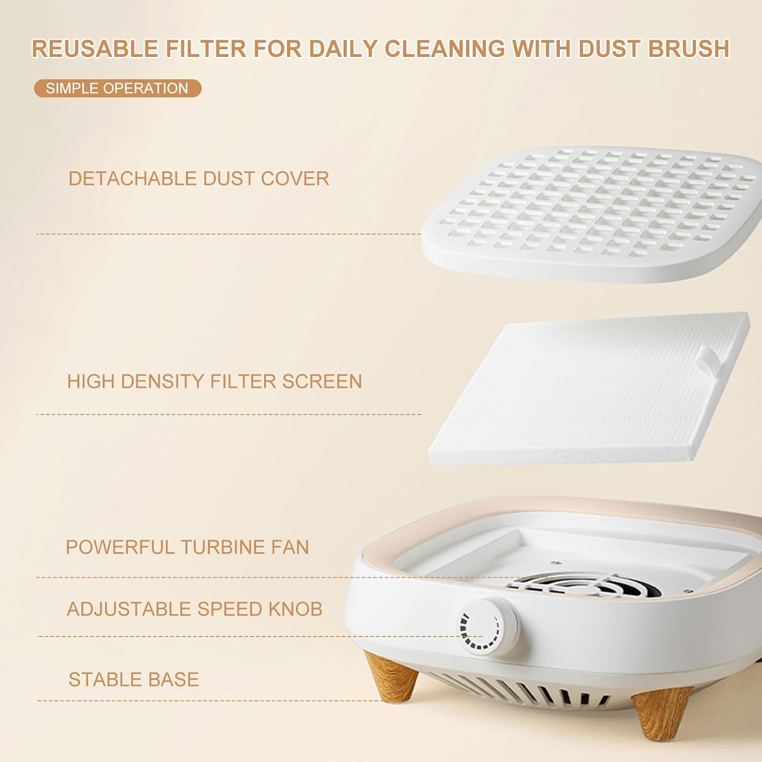 Nail Dust Collector with Reusable Filters - Powerful Vacuum Fan for Acrylic Nails, Salon & Home Use - Milk White