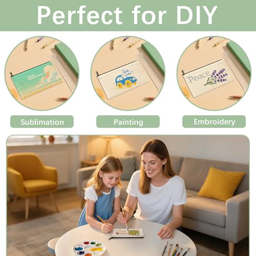 OKBA Beige 30 Pcs Sublimation Makeup Bags Blanks,DIY Craft Canvas Zipper Pouch Cosmetic Bag,Multi-Purpose Canvas Bag Bulk