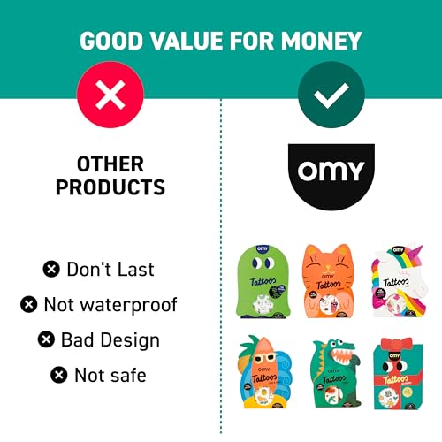 Omy Christmas Temporary Tattoos for Kids - 50 Festive, Colorful Designs with Santa, Gifts, and Snowflakes | Easy to Apply, Safe & Long-Lasting | Age 3 and Up