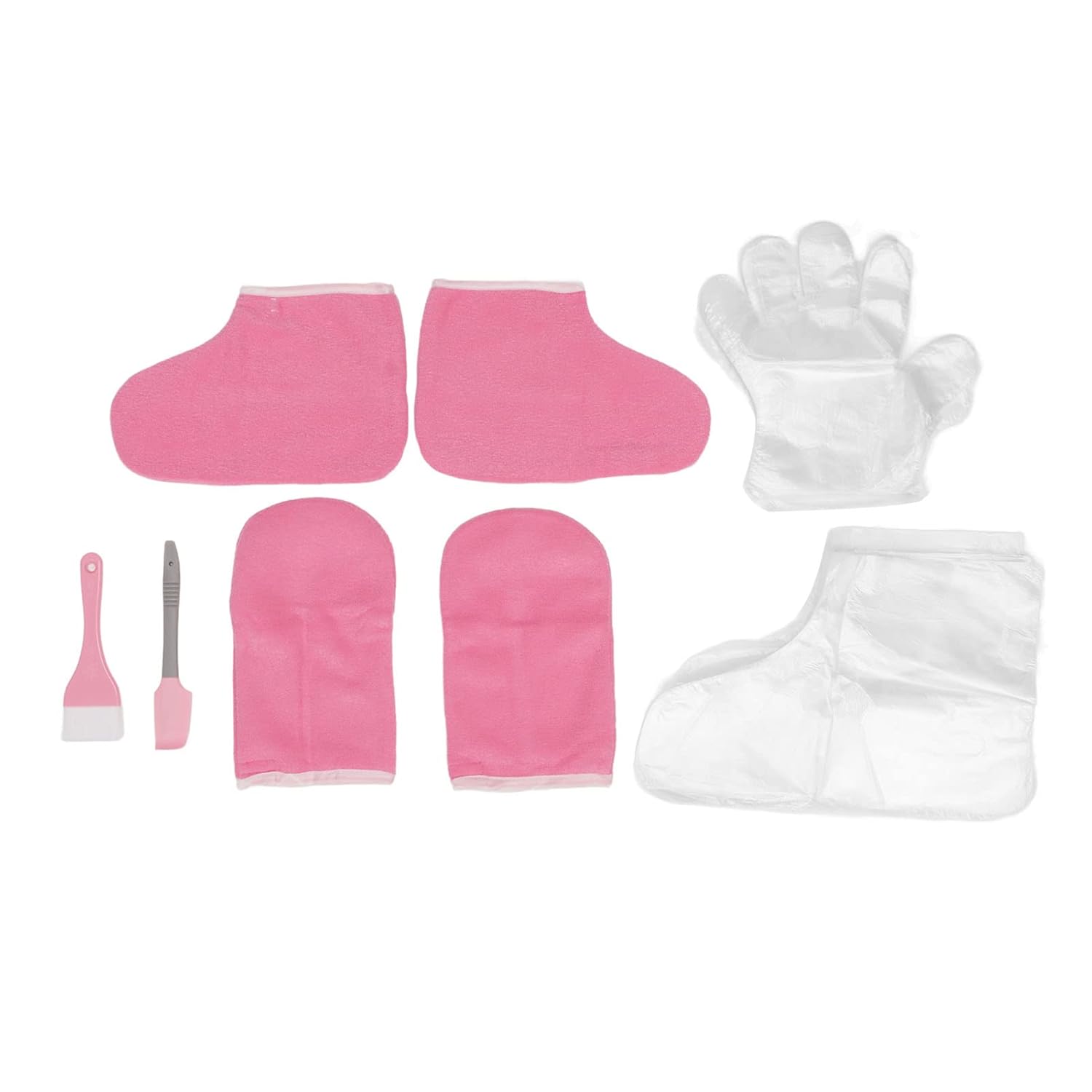 - COMPLETE PARAFFIN BATH SET: You will get 1 x Wax Brush, 2 x Cloth Gloves, 2 x Cloth Foot Covers, 1 x Wax Shovel, 100 x Plastic Gloves, 100 x Plastic Foot Cover, a complete set of paraffin wax Spa tools, so you do not have to buy additional matching tools, the number of enough to use a time. Paraffin Wax Bath Gloves Foot can help maintain the temperature of paraffin wax on hands and feet, will not easily release heat, causing internal cooling, prolonging the time of paraffin w
