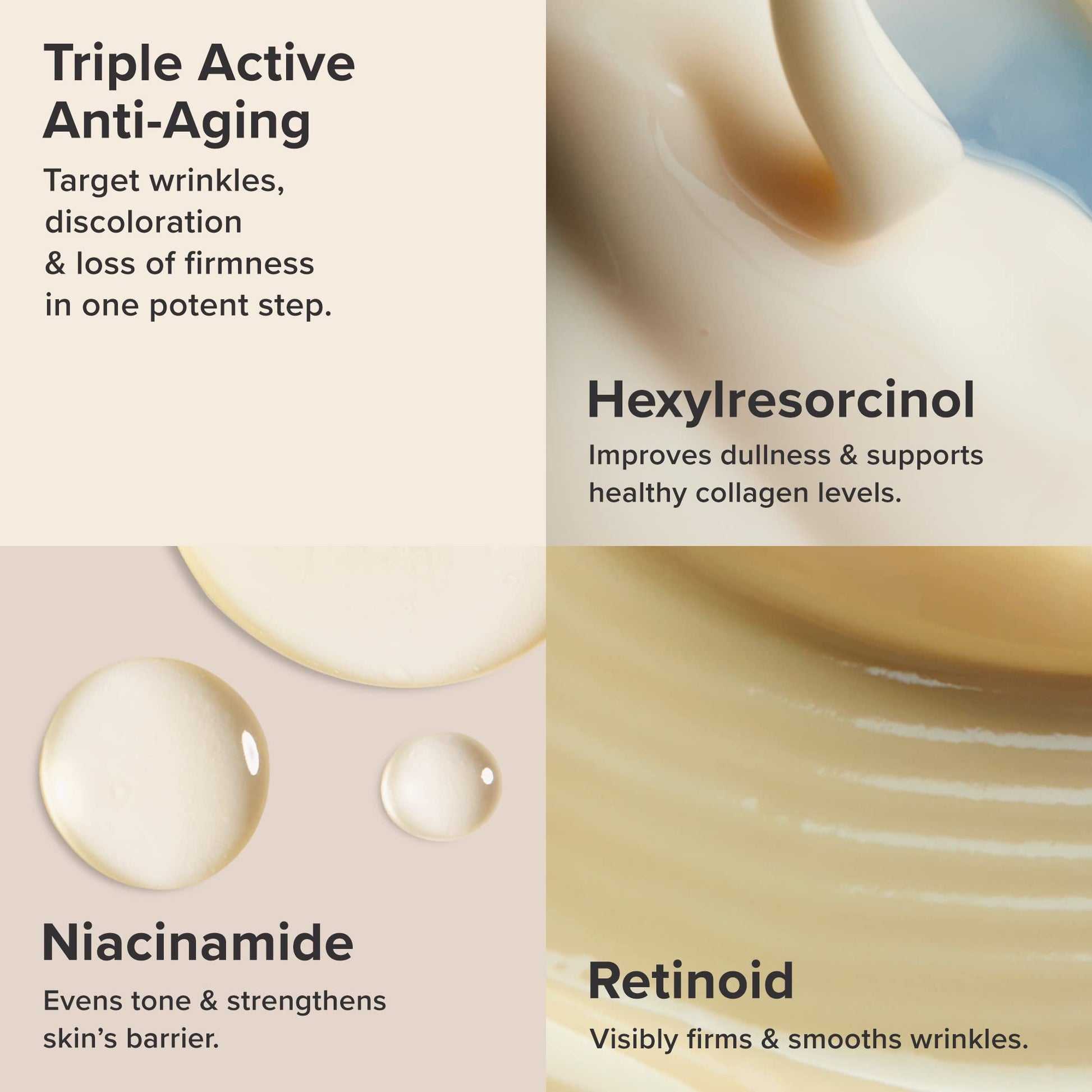 - CLINICALLY PROVEN BLEND: Tighten, brighten & firm in one triple-active step with an antioxidant-rich blend of hexylresorcinol, niacinamide & retinoid.
