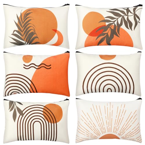 Pinkunn 6 Pcs Boho Makeup Bag Canvas Cosmetic Bags Makeup Pouch for Purse Sunshine Ray Retro Natural Linen Zipper Preppy Pouch Cute Organizer for Women, Bobo Style