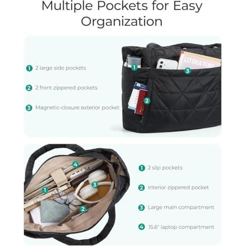 Puffer Tote Bag for Women, Large Quilted Puffy Handbag